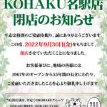 【大切なお知らせ】この度、KOHAKU名駅店は2022年9月30日(金)をもちまして閉店させていただくことになりました。お客様並び...