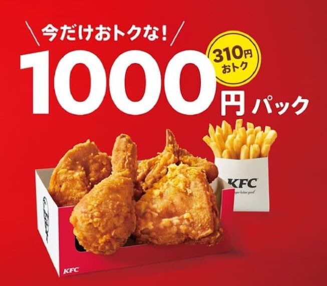 ケンタッキーフライドチキンから、「1000円パック」「1500円パック」が8月18日に発売されます。販売期間は9月7日まで。2~3名におすすめな「オリジナルチキン」4ピースに「ポテトL」が付いた「1000円パック」と、「オリジナルチキン」5ピースに「ポテトBOX」が付いたボリューム満点の「1500円パック」が登場。最大380円お得です。