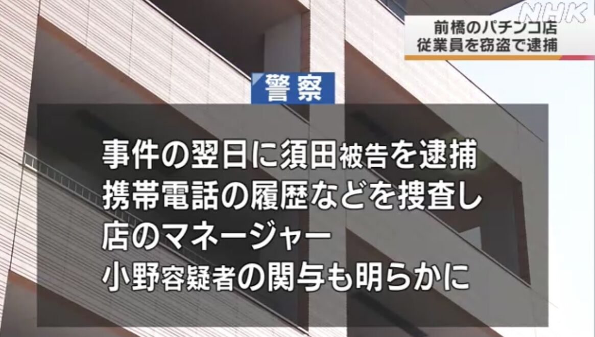 前橋市のパチンコ店から現金800万円と480万円相当の特殊景品を盗んだとして、