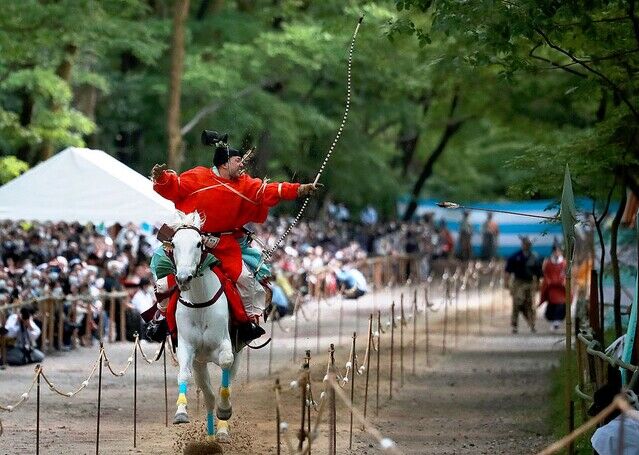 【悲報】流鏑馬の的、あまりにも近いwww 2022/5/4 鈴木さん速報 1: サッカーボールキック(大阪府) [KR] 2022/05/03(火) 19:24:08.91 ID:vY3p5YTE0● BE:329591784-PLT(13100) 京都三大祭りの一つ、葵祭(15日)の平穏無事を祈る「流鏑馬(やぶさめ)神事」が3日、世界遺産・下鴨神社(京都市左京区)で3年ぶりに行われ、人馬一体の勇壮な技が披露された。 この日は約5千人の参拝者らが見守る中、公家や武家の装束をまとった射手が、約400メートルの馬場を馬で疾走。3カ所に設置された約50センチ四方の的に矢を放ち、「カーン」という命中音が境内に響き渡ると、参拝者から拍手が送られた。 引用元 引用元 続きを読む Source: 鈴木さん速報