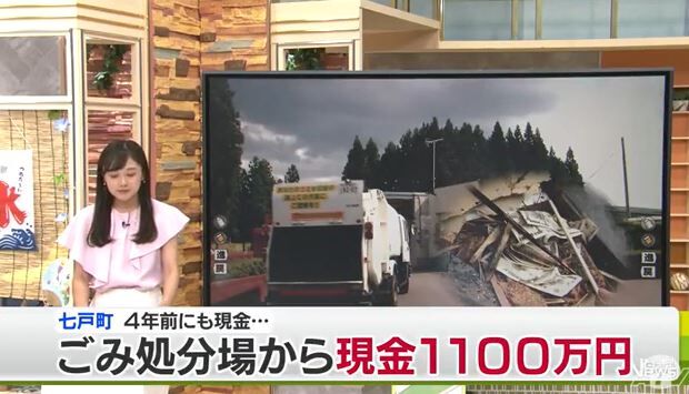 現金が見つかったのは七戸町にある中部上北最終処分場です。施設を管理している中部上北広域事業組合によりますと今年4月4日、作業員が建設用機械を使って家具などの粗大ごみを壊す作業をしていたところ、全て1万円札で100万円が入った封筒を発見しました。
