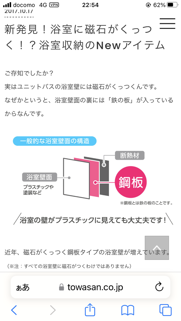 賃貸に住んでる人に良いこと教えるwwww 2023/10/26 鈴木さん速報 1: それでも動く名無し 2023/10/25(水) 22:56:51.59 ID:qYZ2jwwod 実は多くのユニットバスには鉄板が入ってるから磁石がくっ付くんや😳 シャンプーのボトルとか地面に置いとくとカビ生えて汚いから、こういうの買うとスッキリしてええぞ ※このスレは役に立ちましたか? 続きを読む Source: 鈴木さん速報