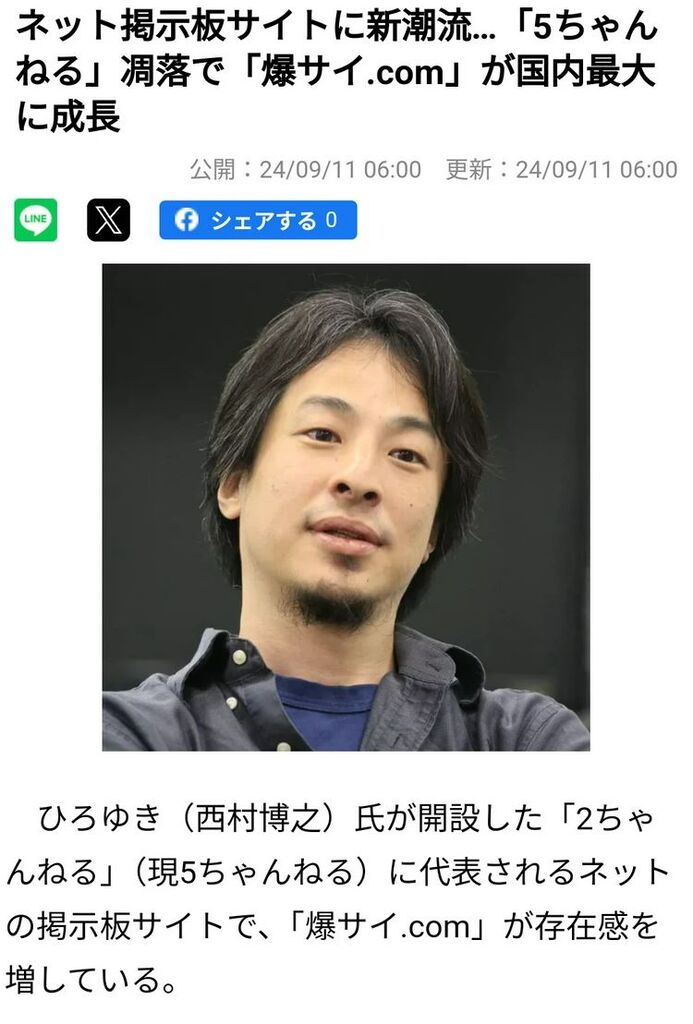 【悲報】爆サイ.com、5ちゃんねるを抜いて国内最大手の掲示板へwww 2024/9/11 鈴木さん速報 1: それでも動く名無し 警備員[Lv.6][新芽] 2024/09/11(水) 14:10:38.45 ID:amRqYT/Kd 草 続きを読む Source: 鈴木さん速報