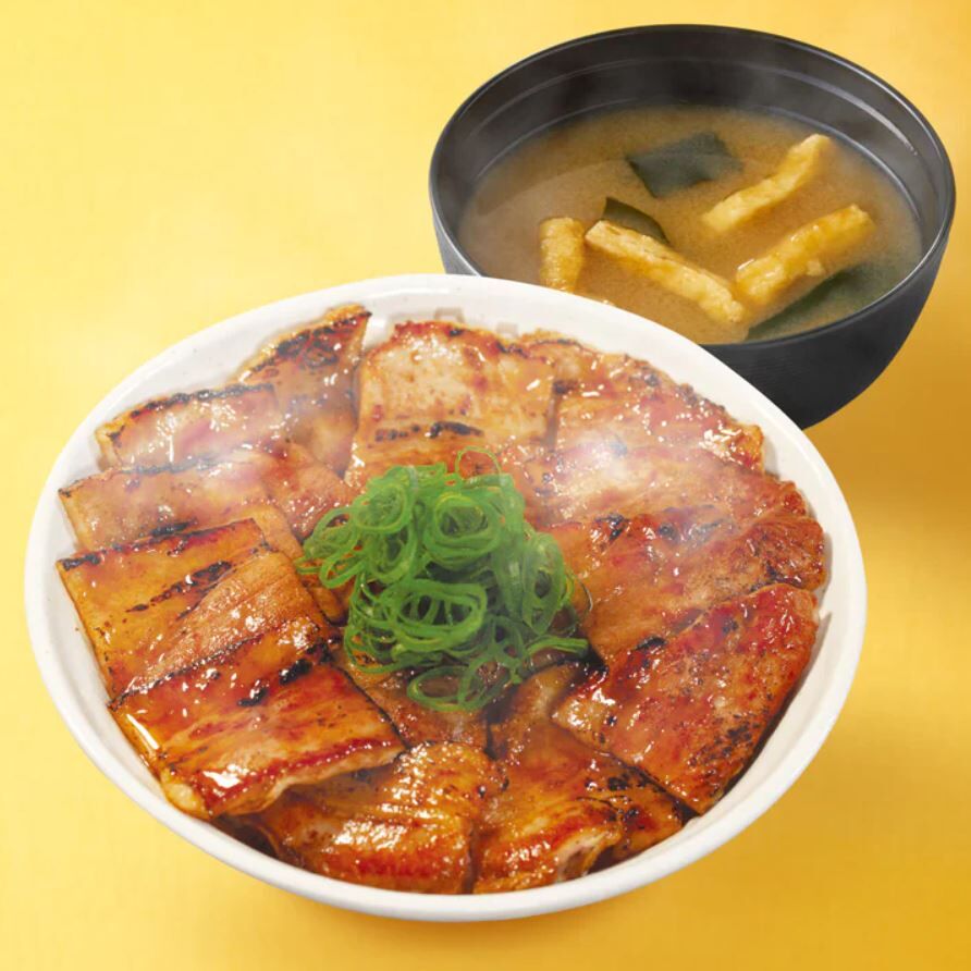 豚肉の脂の旨味に甘味を帯びたタレが絡み、最後のひと炙りで醤油と砂糖の焦げた香ばしさもプラスされた至高の豚丼で、シャキシャキの青ネギの清涼感も重なりごはんのすすむ逸品です。