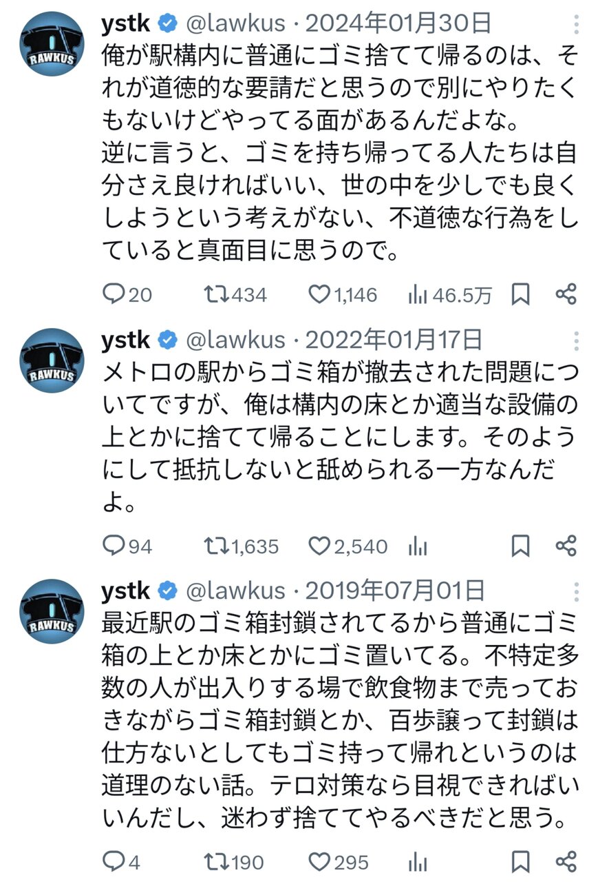 日本国民「ごみ箱を撤去するな!」「事業者や行政がゴミ処理のコストを市民や観光客に押し付けている」 2025/5/18 鈴木さん速報 1: それでも動く名無し 2025/05/17(土) 11:12:42.17 ID:UbDUnTMO0 続きを読む Source: 鈴木さん速報
