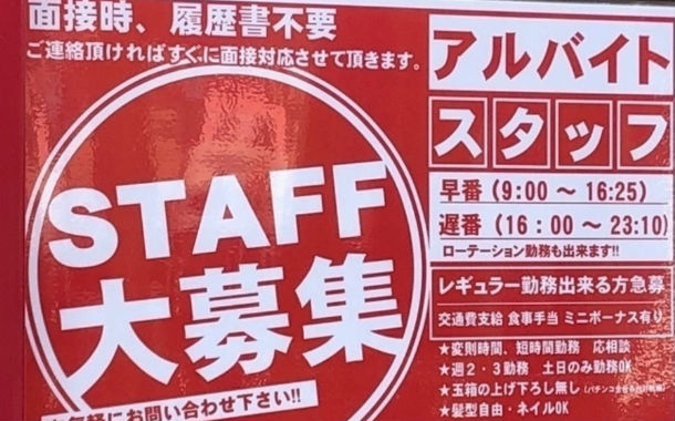 パチンコ店アルバイト(時給1200円)←これ
