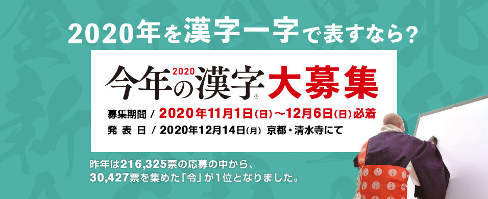 今年一年の世相を漢字一字で表現する2020年「今年の漢字」を11月1日(日)より全国から広く募集します。