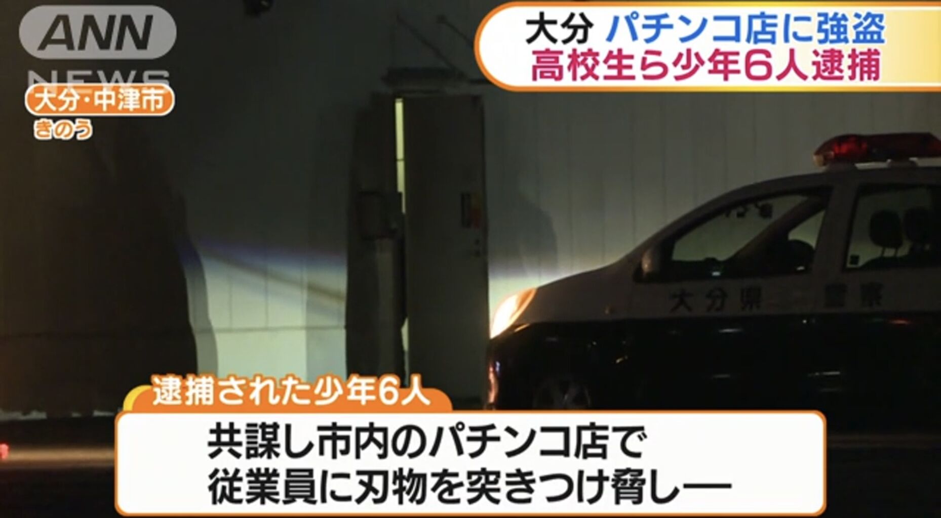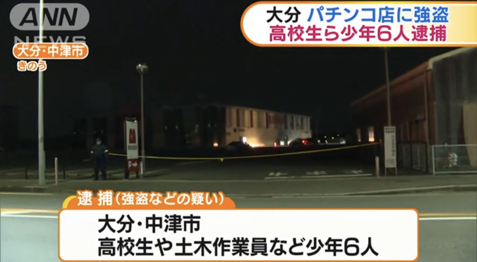 大分県中津市のパチンコ店で起きた強盗事件で、市内に住む高校生ら少年6人が逮捕されました。